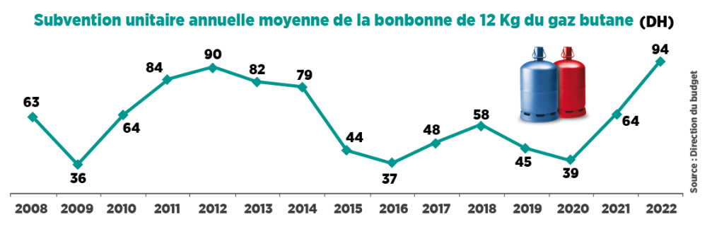 A noter que la subvention moyenne pour une bonbonne de 12 kg de gaz butane s’est élevée à environ 68 DH au titre de la période janvier-septembre 2023, ce qui représente une baisse de 30 % par rapport à la même période de l’année précédente.