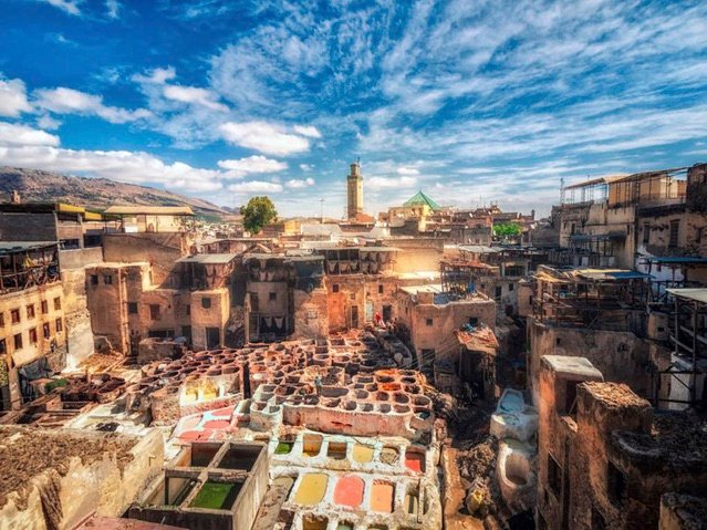Fès ne se visite pas, elle se vit. Fondée au VIIIe siècle, cette cité millénaire est considérée comme la capitale spirituelle et culturelle du Maroc. Sa médina, Fès el-Bali, est l’une des plus grandes zones piétonnes au monde et figure au patrimoine mondial de l’UNESCO. Arpenter ses ruelles, c’est plonger dans un labyrinthe vivant où se côtoient échoppes de cuivres martelés, tanneries ancestrales et mosquées centenaires.